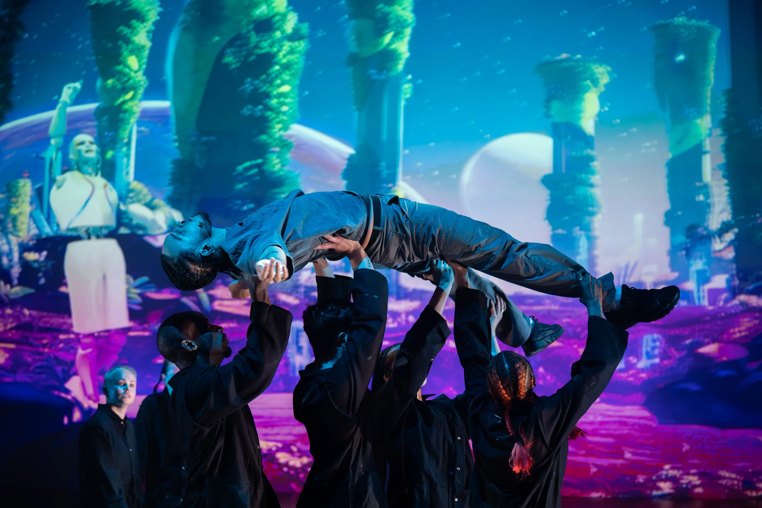 FRAY created a sensation with sold-out performances at Sadler's Wells Lilian Baylis Theatre in 2024, attracting a multicultural audience fascinated by the theatre production's groundbreaking integration of hip-hop music and dance, gaming themes and virtual characters to tell a powerful story that explores questions at the heart of our evolving relationship with technology and artificial intelligence.