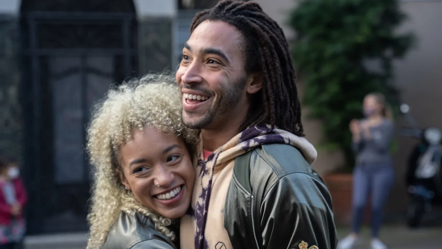 Jenna and Michael, keeping warm.